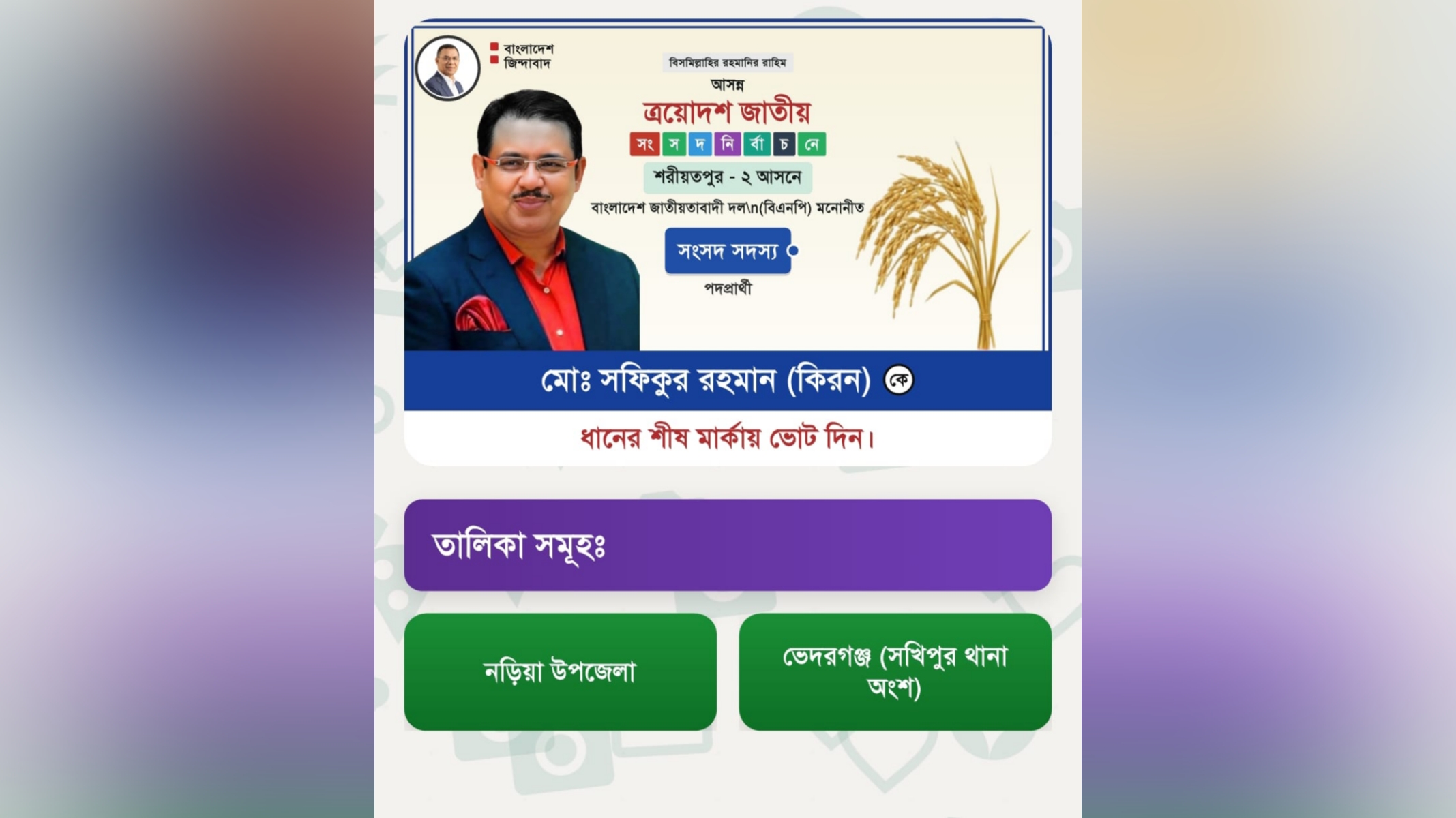 শরীয়তপুর-২ আসনের ভোটারদের জন্য একটি নতুন অ্যান্ড্রয়েড অ্যাপস চালু করা হয়েছে।